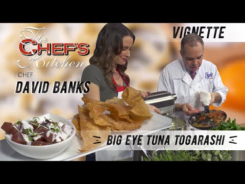 Prepare all ingredients as directed, keep refrigerated before service. Cut the wonton skins corner to corner, fry in oil until crisp, drain on a paper towel, keep at room temperature for service. Combine the first 5 ingredients in a cold bowl, transfer to a serving dish, adjust to your taste with more Togarashi spice. Drizzle with the Key Lime Crema and serve with Wonton Crisps on the side. Serve immediately.