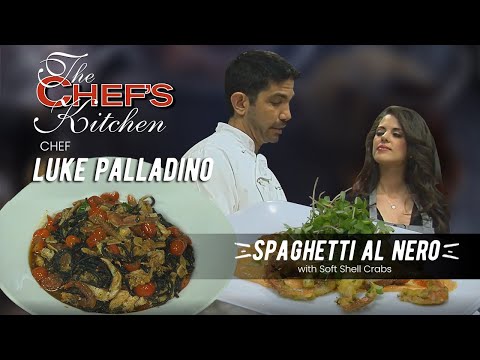 Chef Luke Palladino makes soft shell crabs with black pasta made from cuttlefish ink.