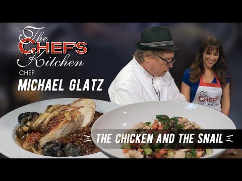 Season chicken breasts and sear, skin side down, in preheated skillet with olive oil. Add cipollini. Oven roast until done, about 10-15 minutes. Remove and rest. Brown mushrooms in the chicken pan, add snails and cipollini. Saute a few moments.